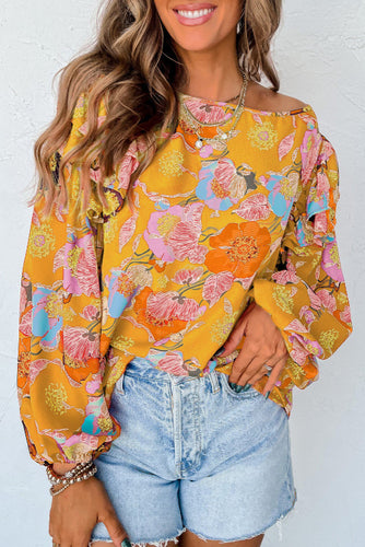 Ginger Floral Print Ruffle Puff Sleeve Blouse