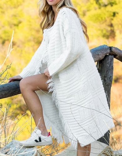 Geometric Cable Knit Pocketed Open Front Cardigan