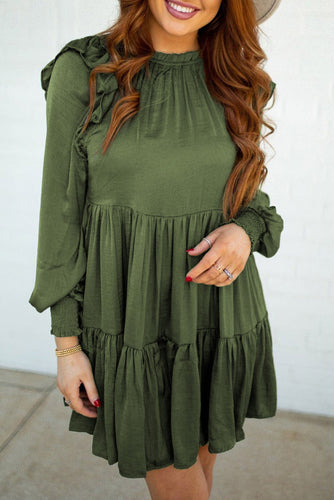 Green Ruffled High Waist Long Sleeve Mini Dress