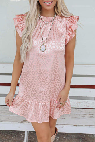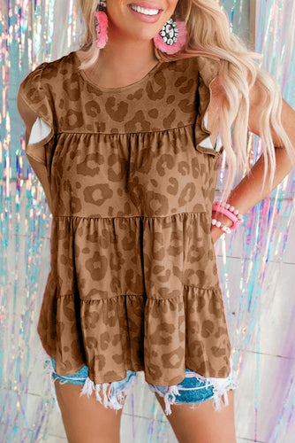Leopard Print Flutter Sleeve Tiered Tank Top