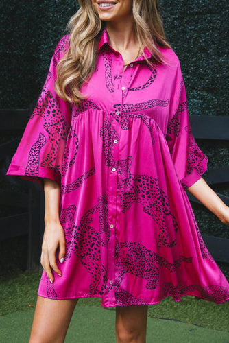Cheetah Print Bell Sleeve Mini Shirt Dress