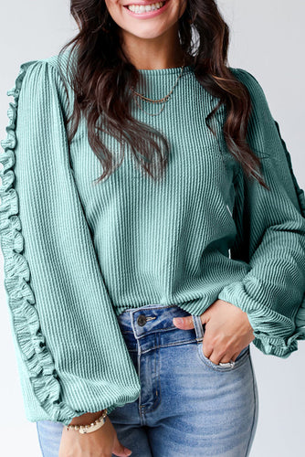 Moonlight Jade Ruffled Sleeve Corded Textured Blouse
