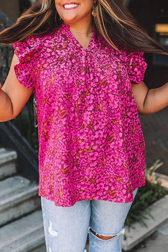 Floral Print Ruffle Sleeve Plus Size Shift Top