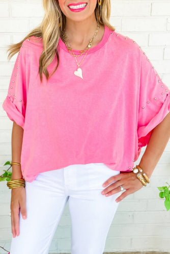 Mineral Wash Studded Batwing Sleeve Oversized Top