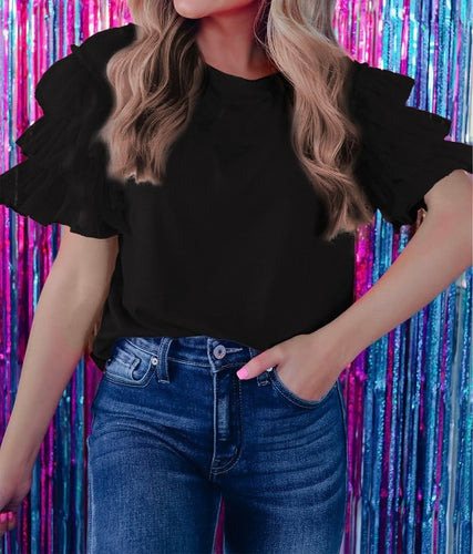 Tulle Ruffle Sleeve Top