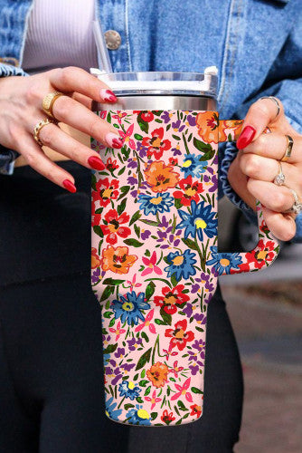 Floral Pattern Stainless Steel Straw Handle Cup