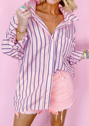 Floral Print Collared Balloon Sleeve Loose Shirt