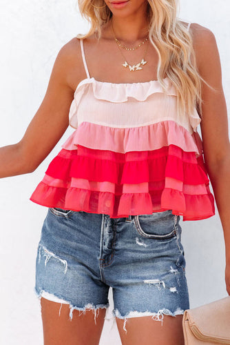 Gradient Ruffle Tiered Spaghetti Straps Tank Top