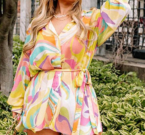 Vibrant Floral Print Trimmed Ruffle Sleeve Blouse