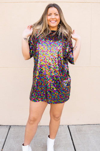 THROW THE CONFETTI RAINBOW SEQUIN DRESS
