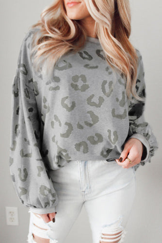 Leopard Print Drop Shoulder Loose Sleeve Casual Top