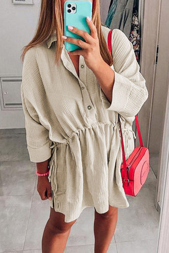 Cream Drawstring Waist Dress
