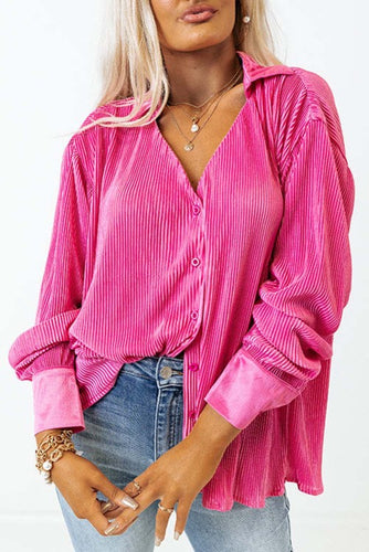 Pink V Neck Collared Button Pleated Shirt