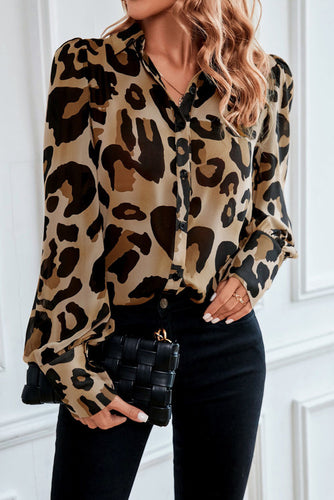 Leopard Bishop Sleeve Button up Shirt