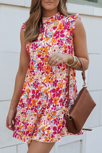 Ruffle Trim Tiered Sleeveless Floral Mini Dress