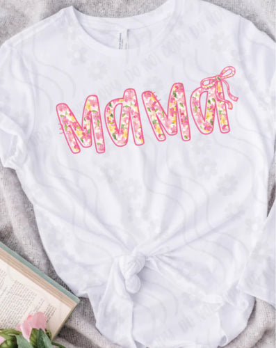 MAMA floral font with bow tee