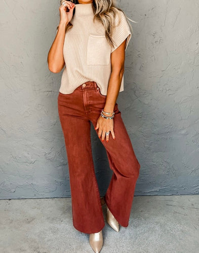 • Large instock Waffle knit Bishop Sleeve Split Oversized Top