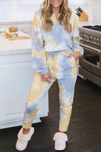 Tie Dye Henley Top and Drawstring Pants Outfit