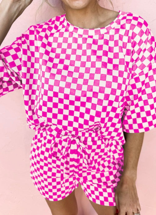 A trendy and comfortable two-piece set featuring a checkered top and matching shorts. Designed for effortless casual style, this set is perfect for relaxed days, outings, or chic everyday wear.