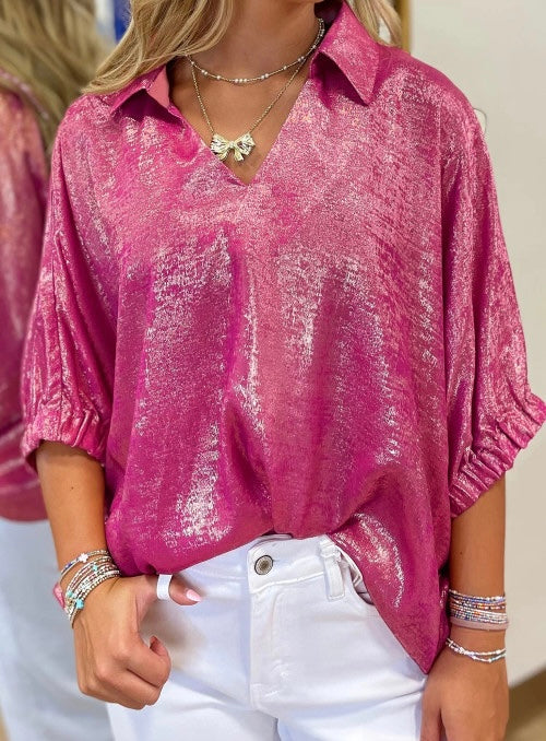 The collared V-neck keeps it polished, the half sleeves keep it effortless—and the vibe? Total cool-girl energy.