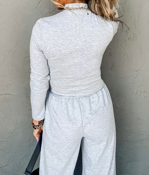 Your effortless outfit solution just landed. This two-piece set features a sleek long sleeve high neck top paired with high-rise smocked waist pants that move with you — never against you. Designed with a flattering central seam and buttery soft stretch, this set delivers that polished look with zero effort. Dress it up with booties or keep it chill with sneakers — either way, you’ll look pulled together without even trying.