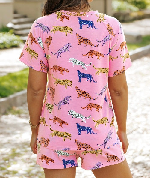 Brighten your look with our Leopard Short Sleeve High Waist Two-Piece Shorts Set, featuring a bold print and a stylish, comfortable fit for all your summer adventures.
