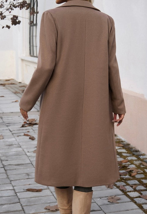 Single Breasted Lapel Collar Flap Pocketed Overcoat