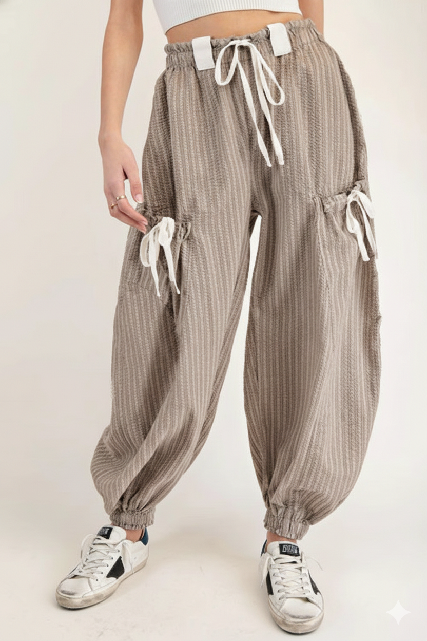 You know that pair of pants you reach for over and over again because they just get you? Meet your new faves. The Stripe Drawstring Cargo Joggers are that effortless mix of casual and chic, made for real life — school runs, errand days, couch hangs, and everything in between.