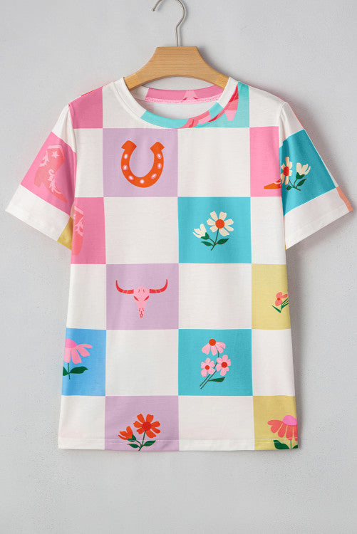 Add a Western-inspired statement to your casual wardrobe with our Western Fashion Checker Print Crewneck T-Shirt. Featuring a classic crew neckline and eye-catching checkerboard pattern with Western flair, this tee offers a trendy and comfortable fit perfect for pairing with jeans, boots, or cutoffs. A must-have for standout everyday style.